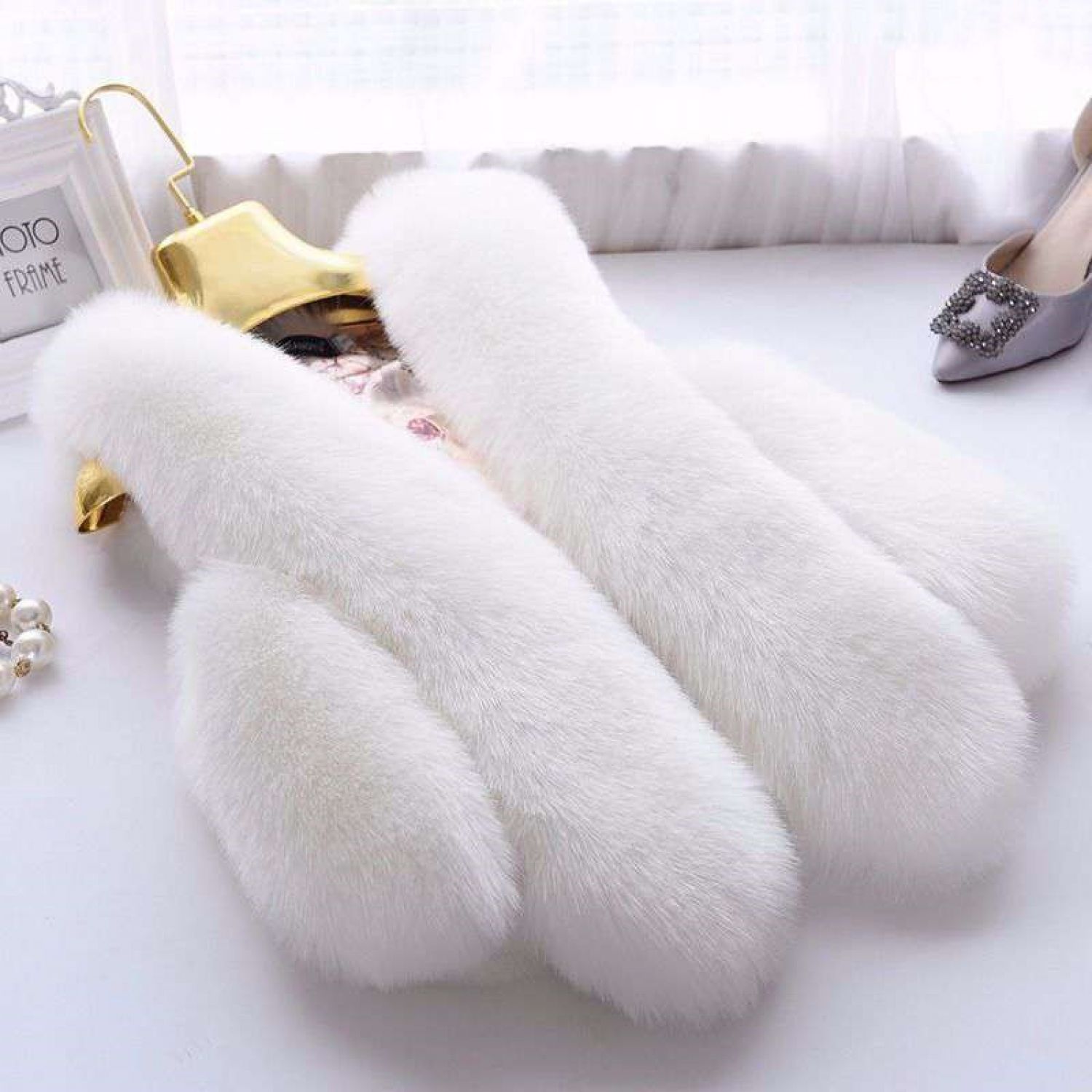 Women's Faux Fox Fur Thickening Fashion All-match Vest White S