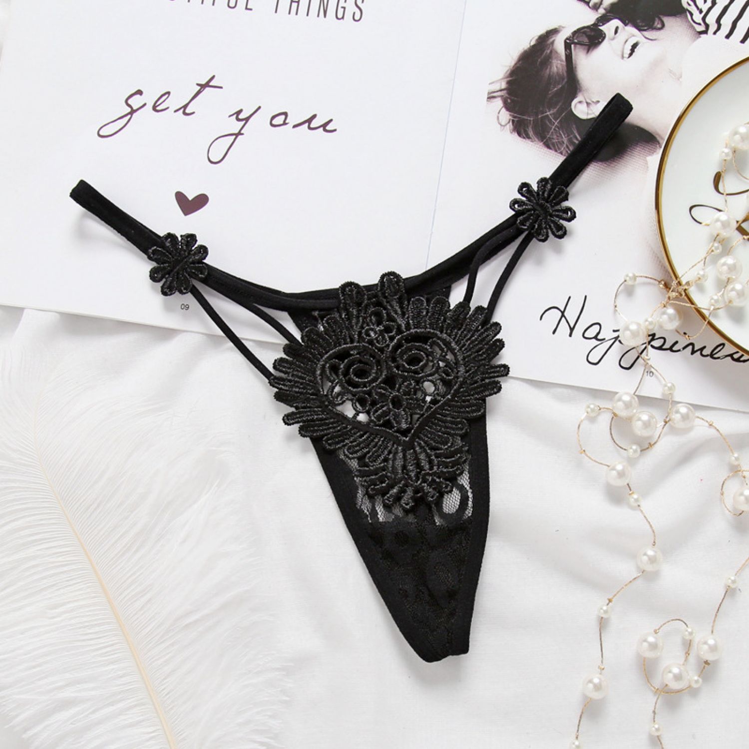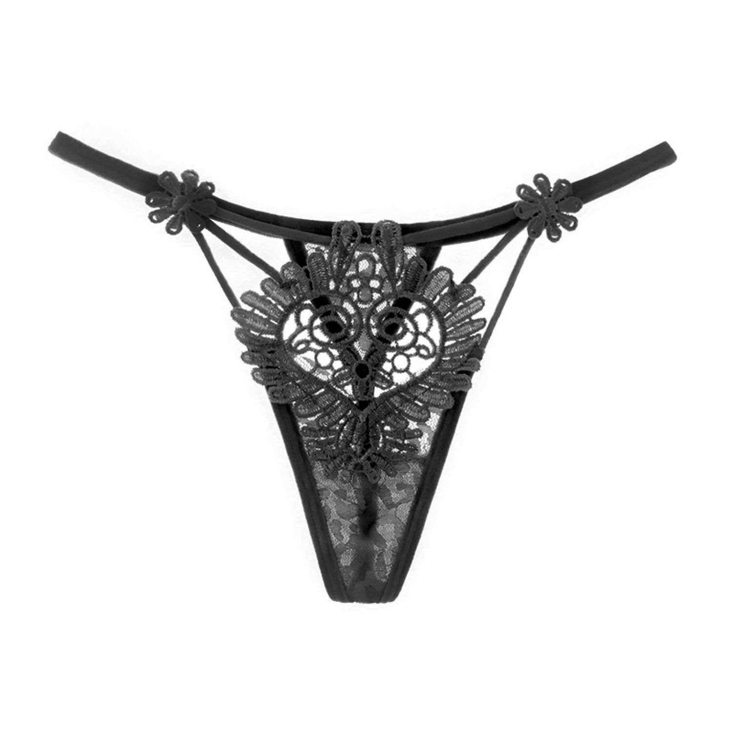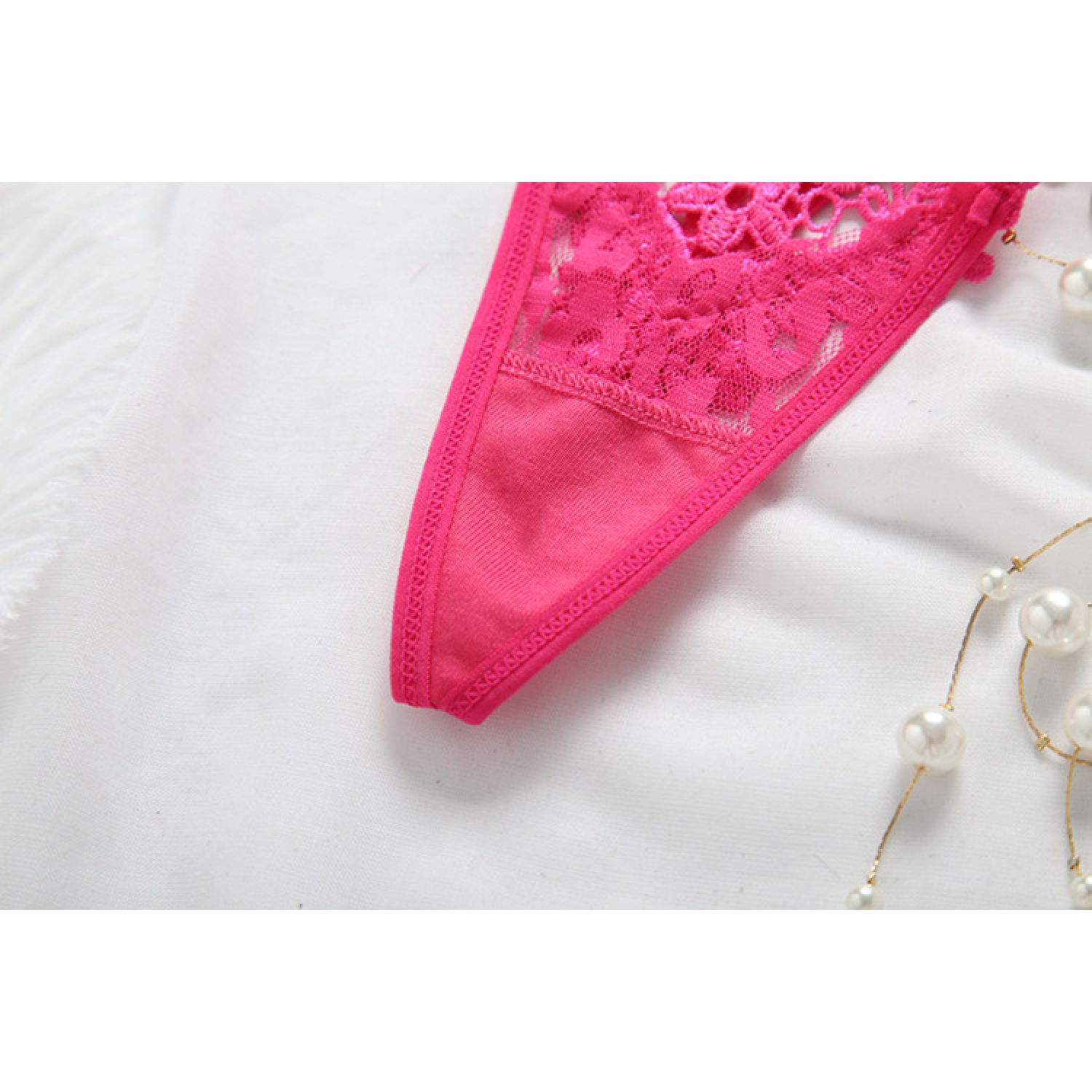 Women's Hollow Low Waist Water Soluble Flower Embroidery T-back Underwear Red Free Size