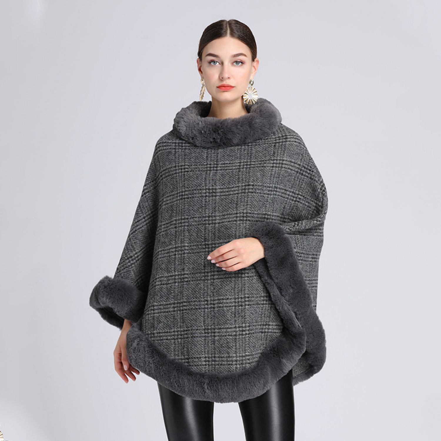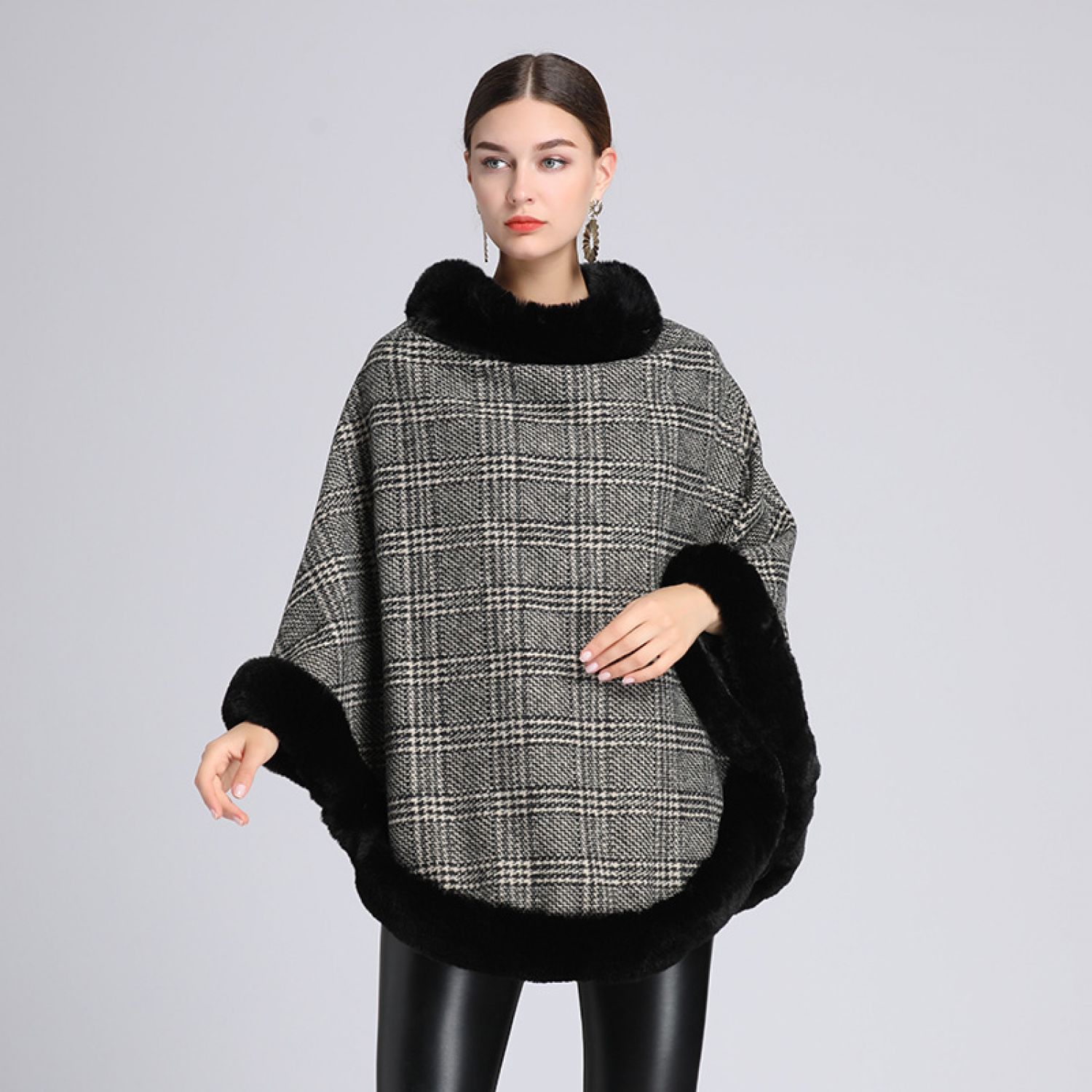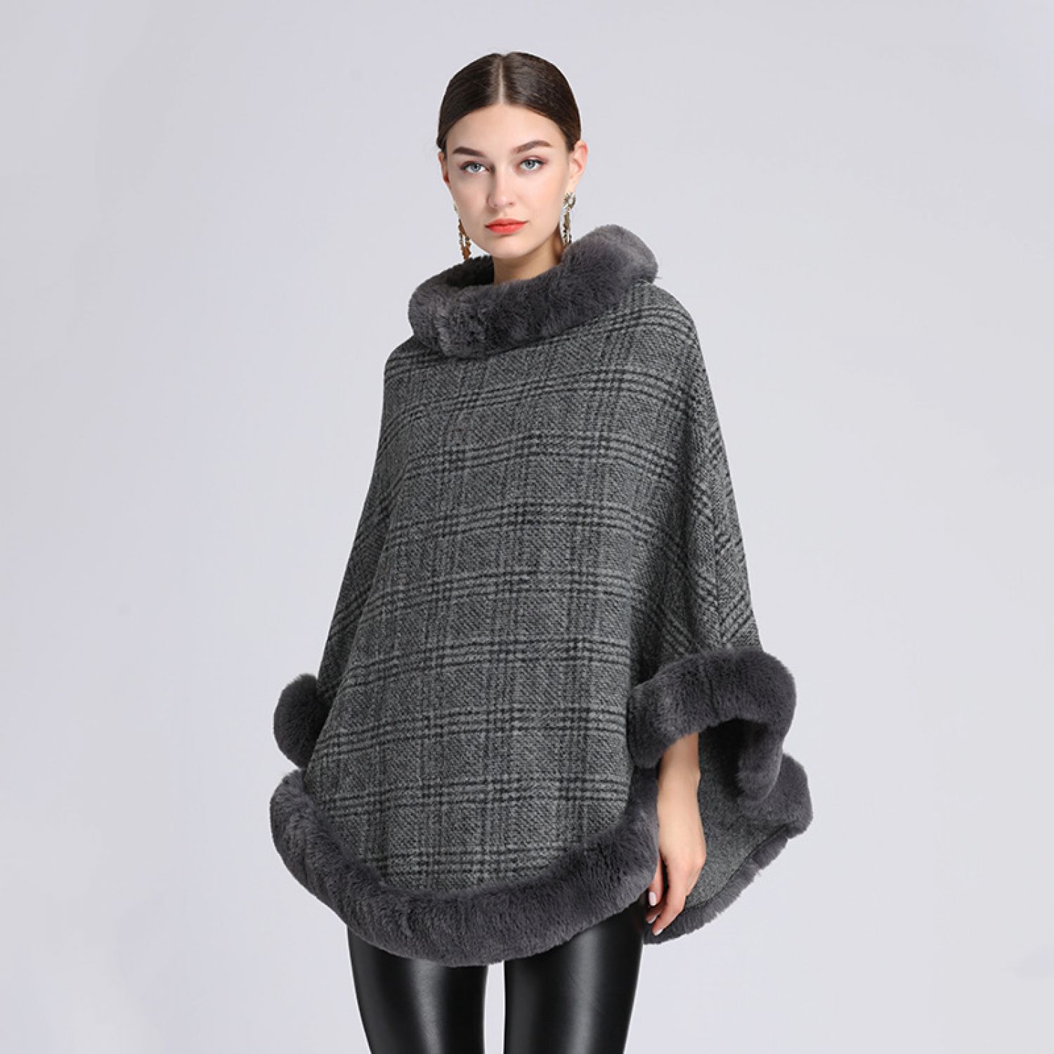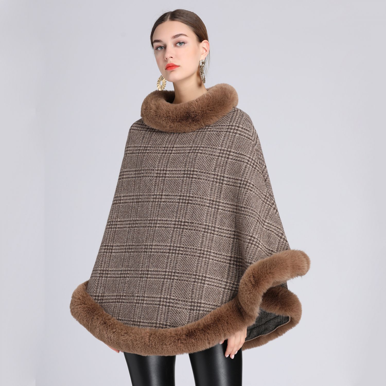 Women's Imitation Rabbit Fur Collar Shawl Cape Loose Pullover Khaki Free Size
