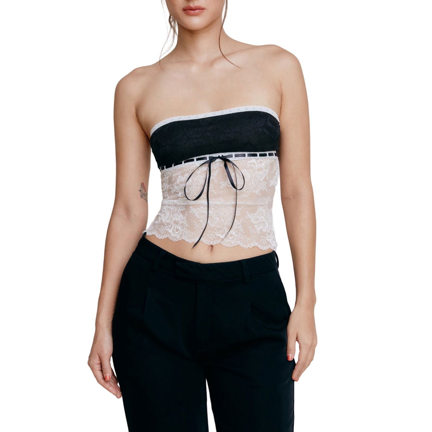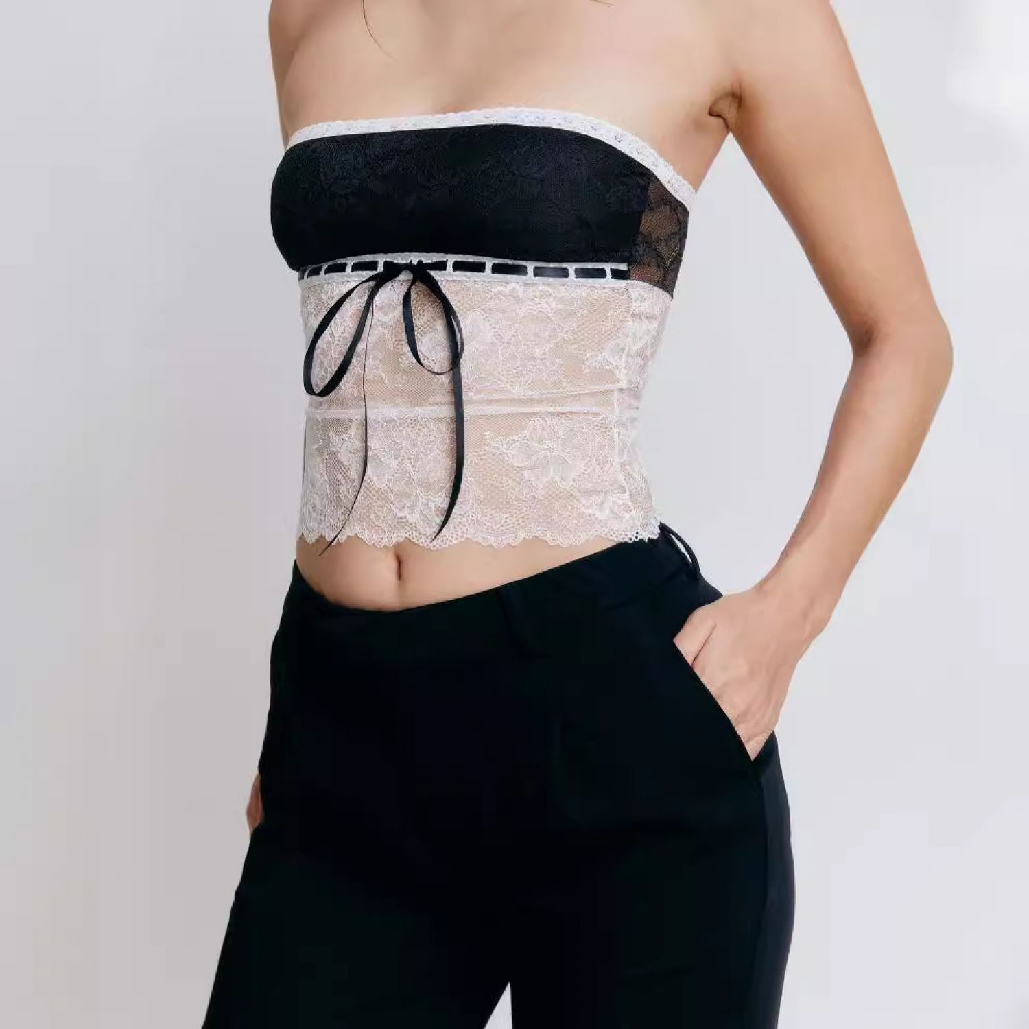 Product information: Fabric name: lace Color: white, black Main fabric composition: Polyester Size: S,M,L Style: slim fit Style: pullover