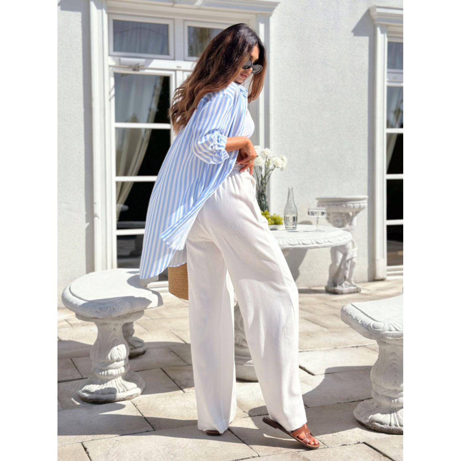 Color: khaki, blue stripes, pink stripes