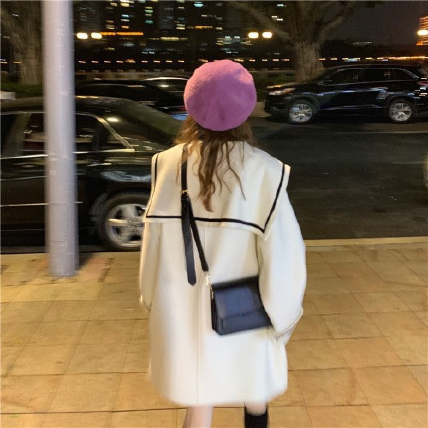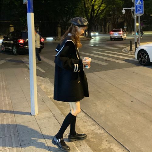 Women's New Long Loose Woolen Coat Black One size