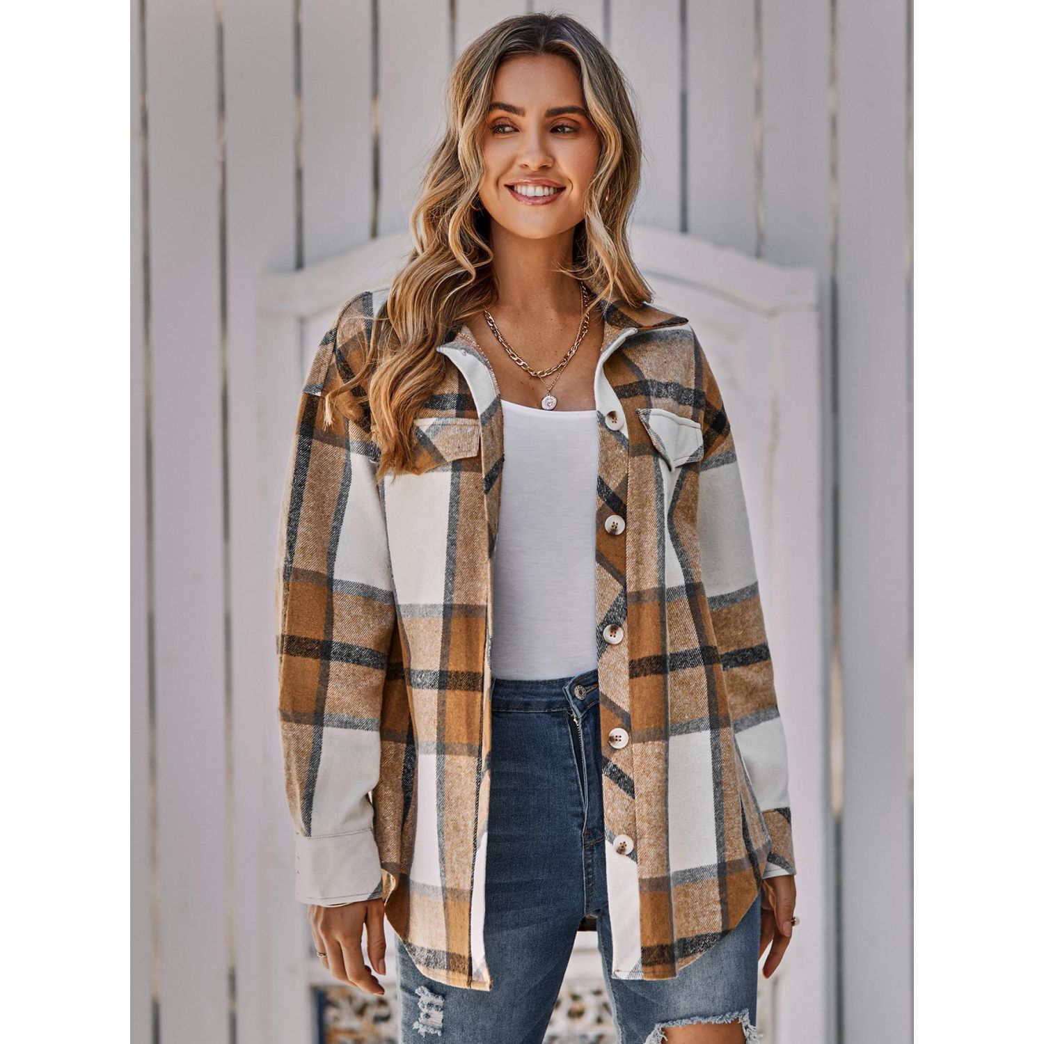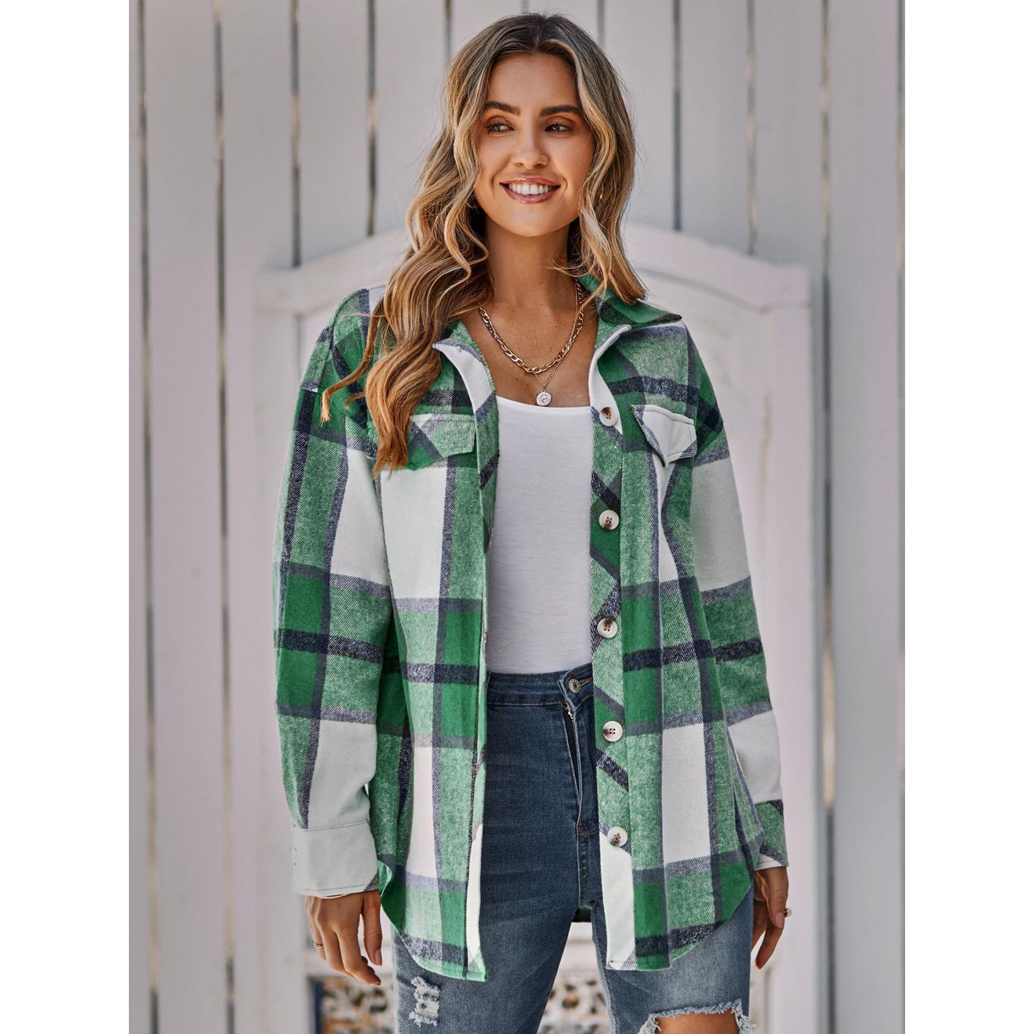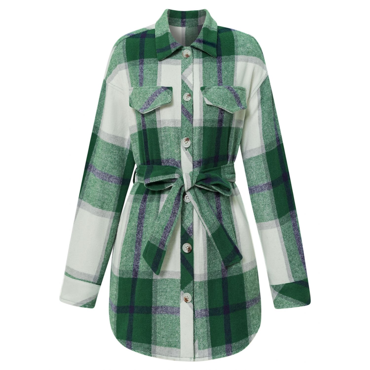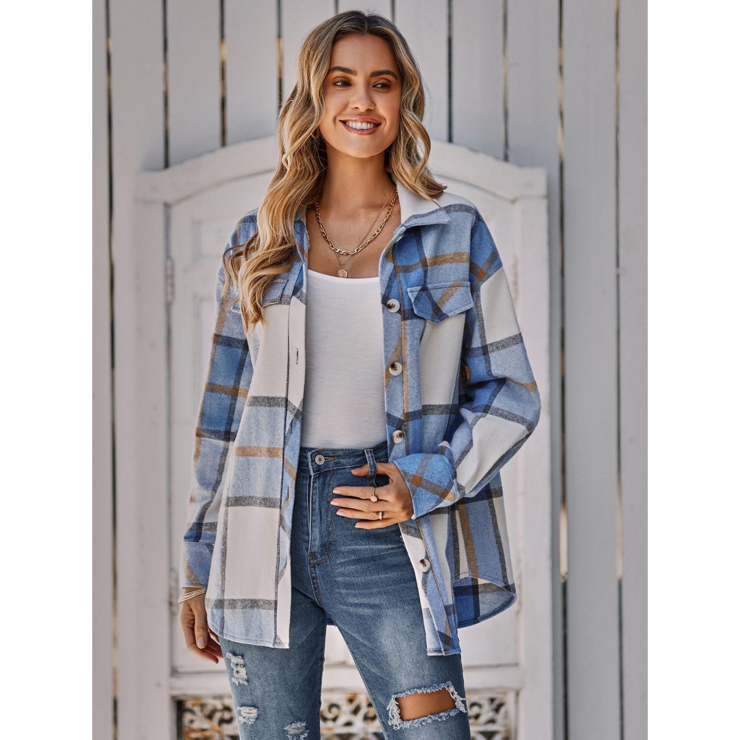 Women's Single-breasted Casual Plaid Women's Coat Blue S