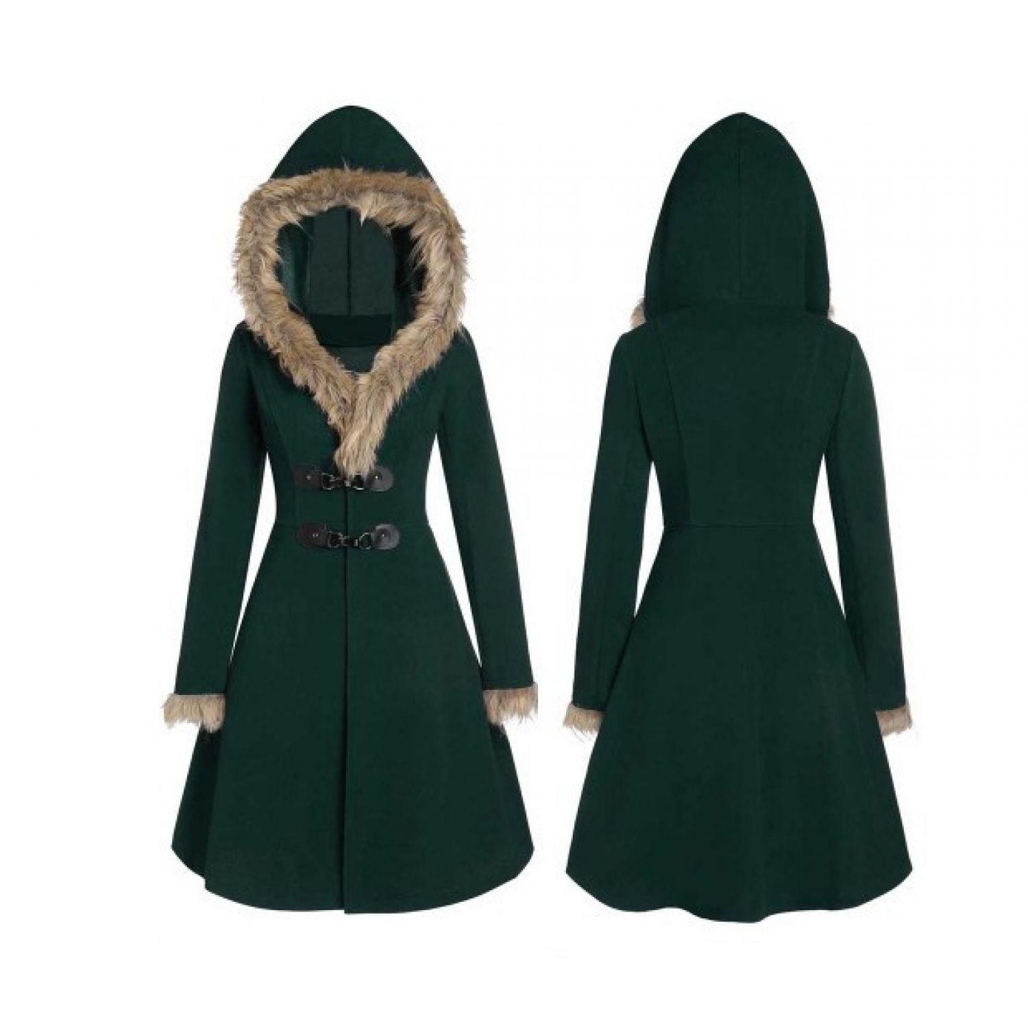 Women's Slim Fit Double-sided Woolen Medium Length Jacket Green S