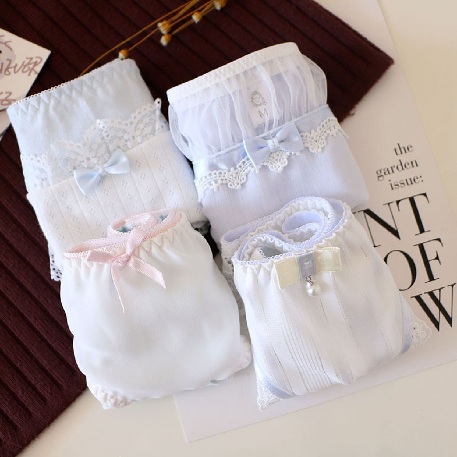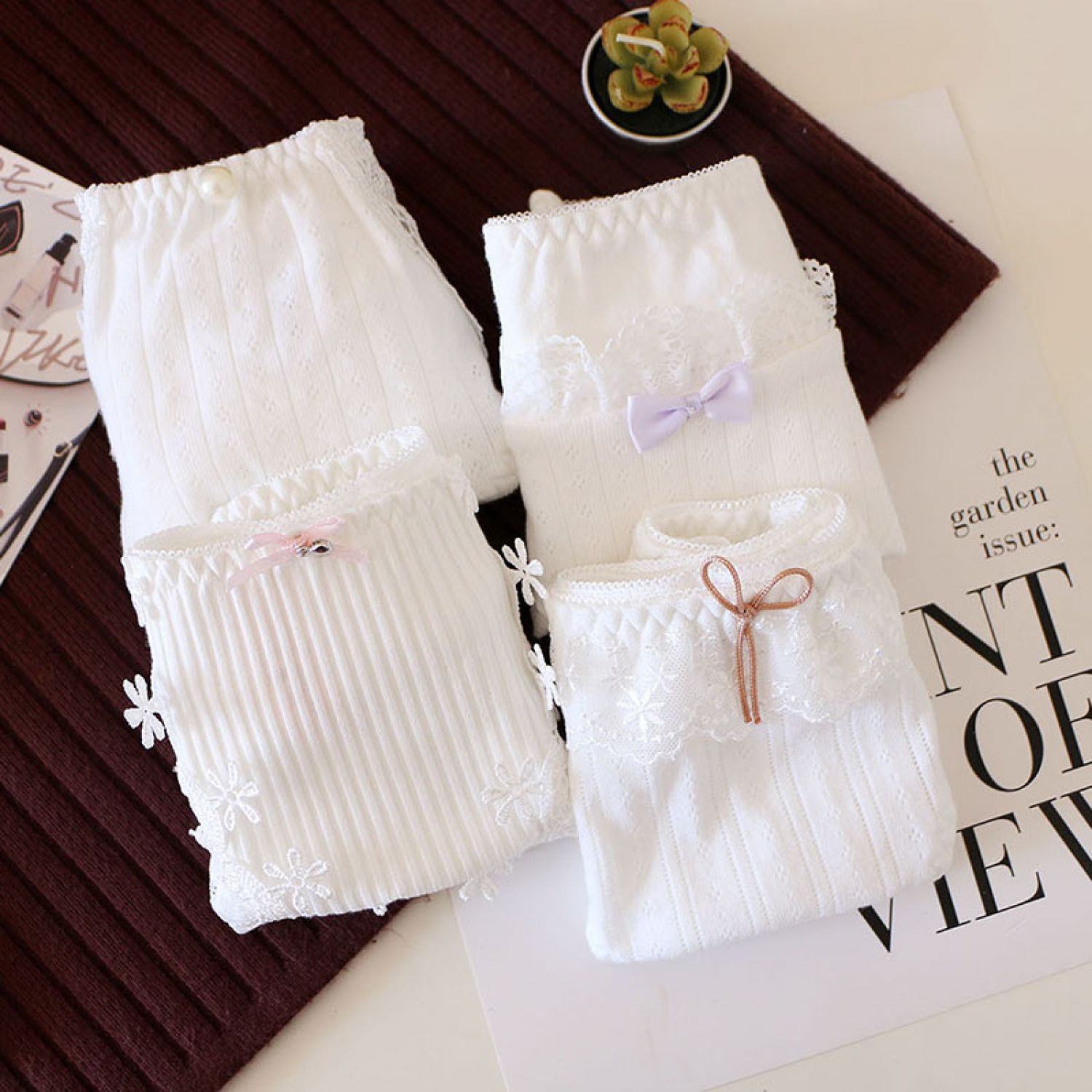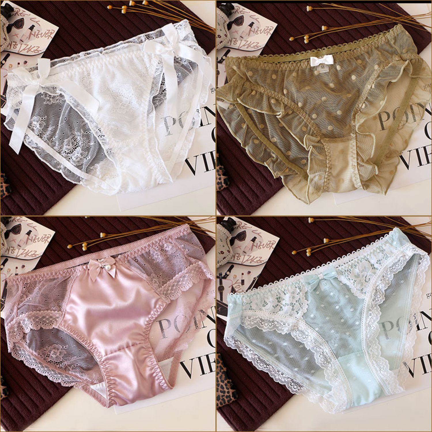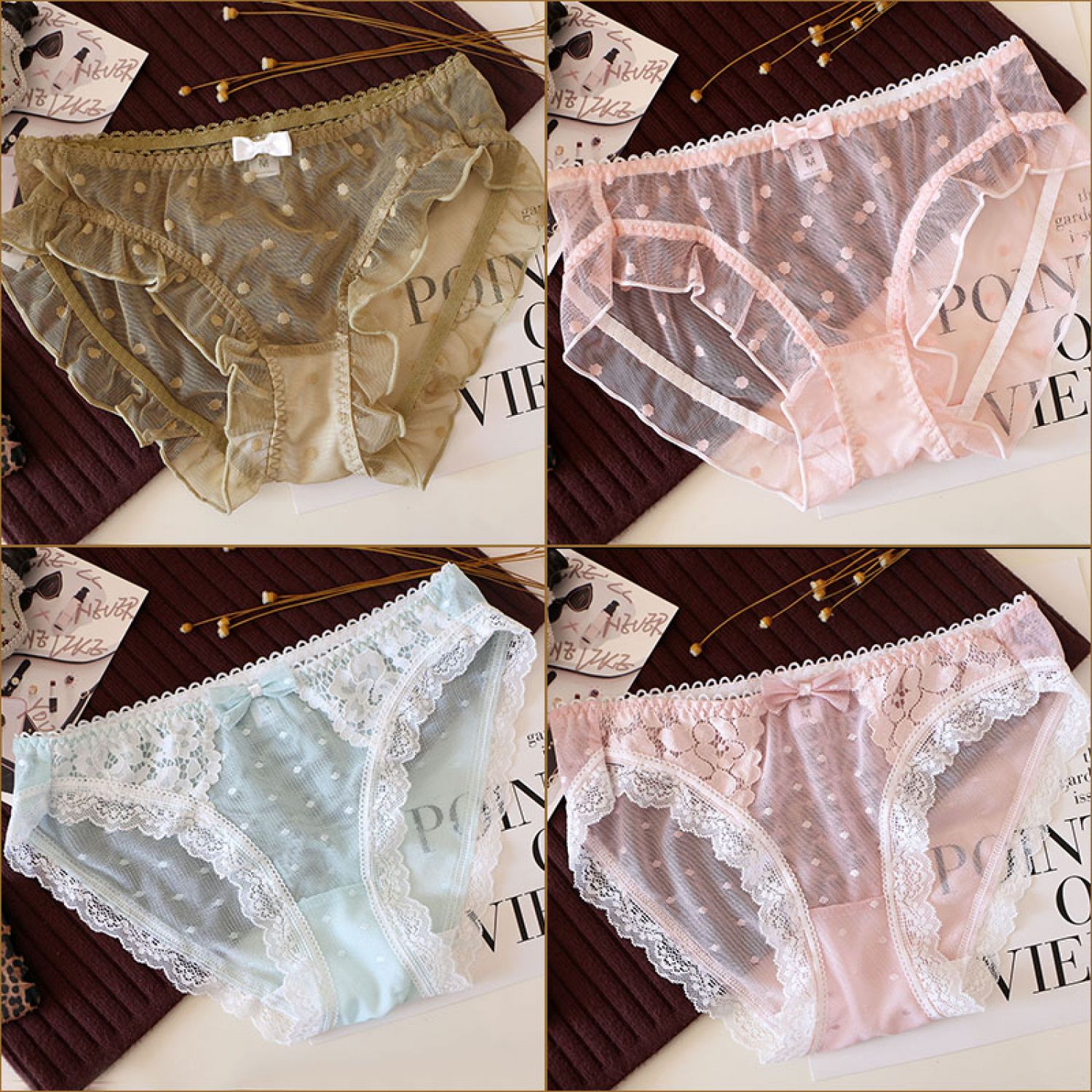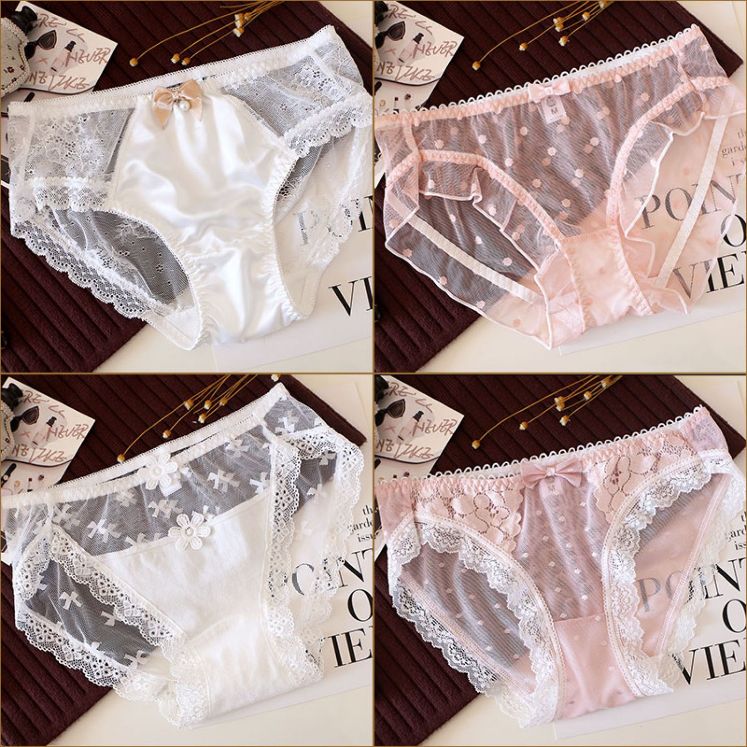 Women's Solid Color Cotton Shorts Sexy Lace Cute Low Waist Transparent Hollow 1 Style M