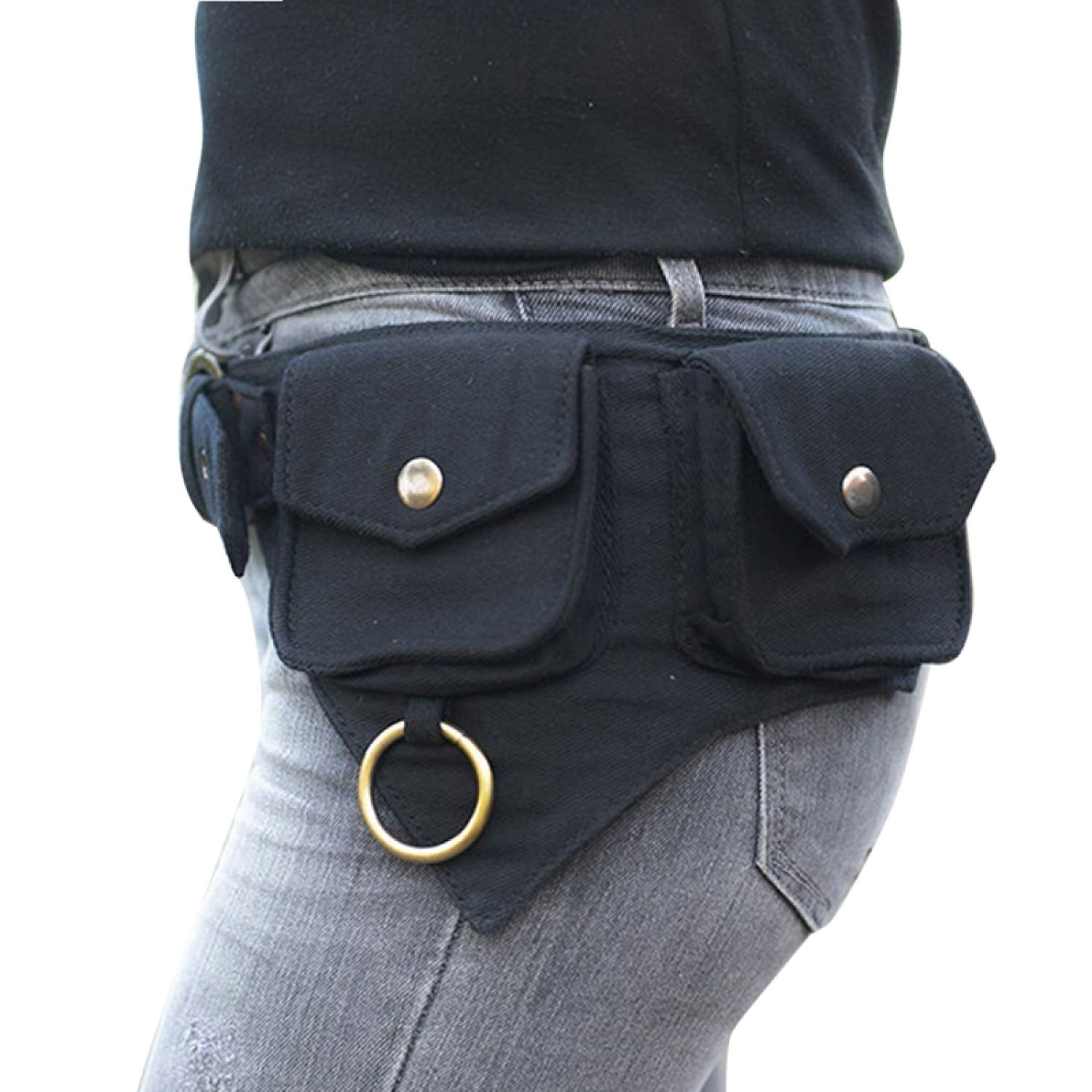 Women's solid color storage belt bag Black One size