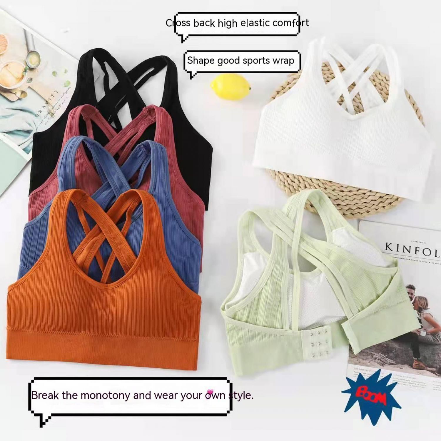 Function: Gather, seamless, breathable, beautiful back, bare back