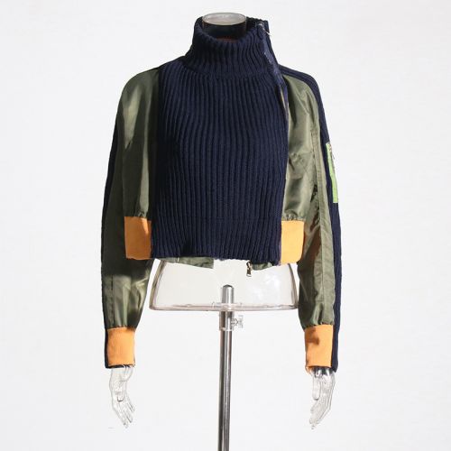 Women's Turtleneck Fashion Knitted Short Coat Dark Blue Free Size
