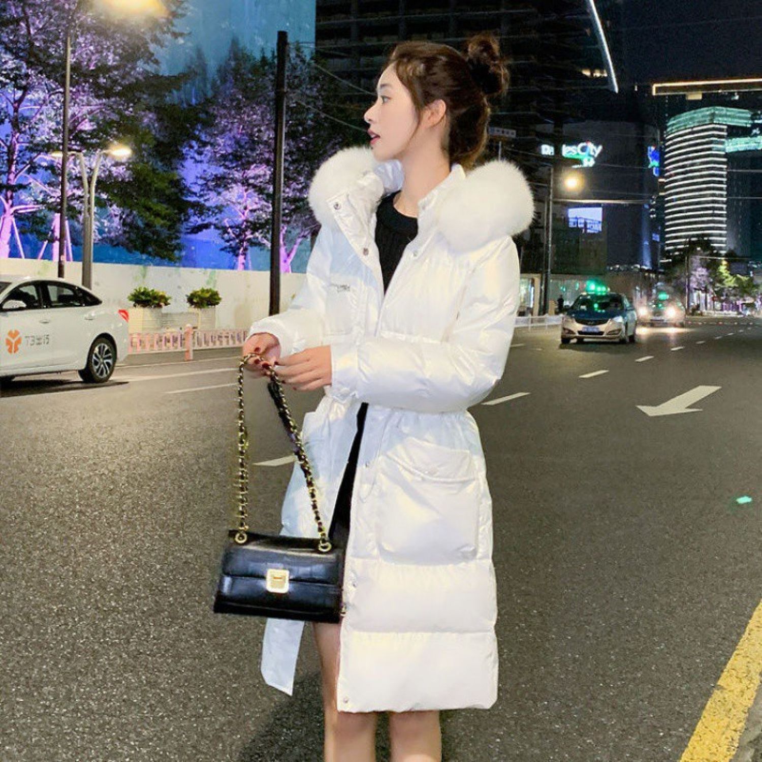 Color: white, black [black fur collar], champagne, Black [gray fur collar]]
