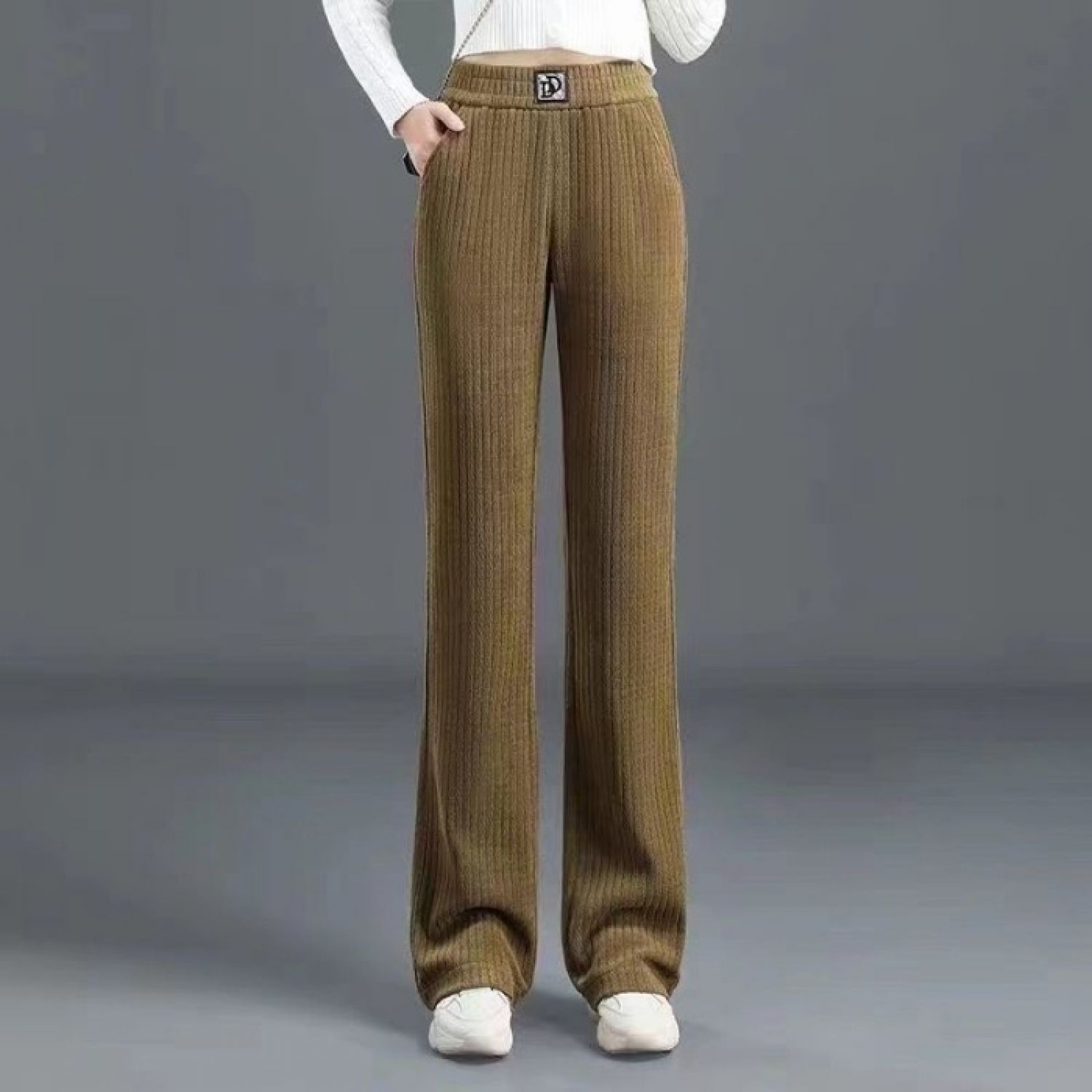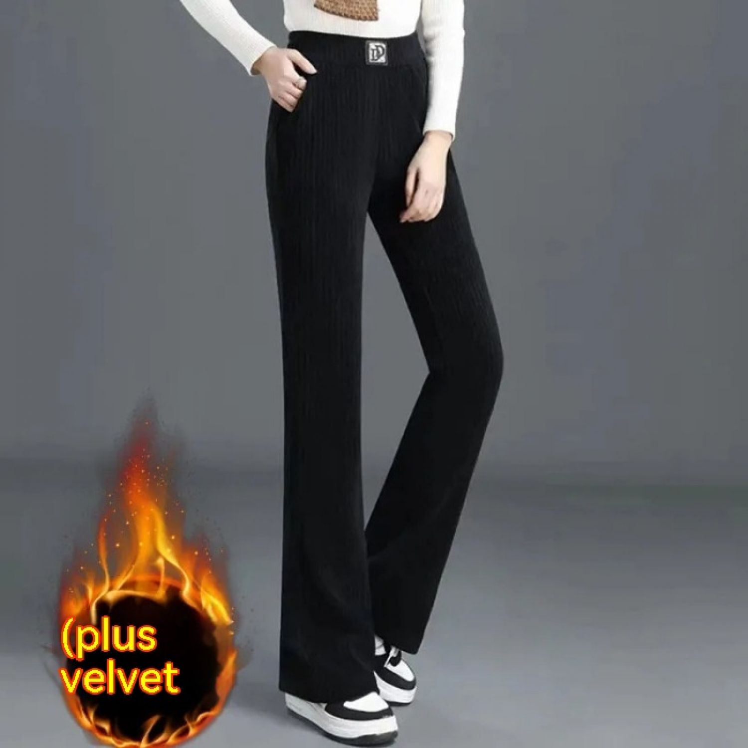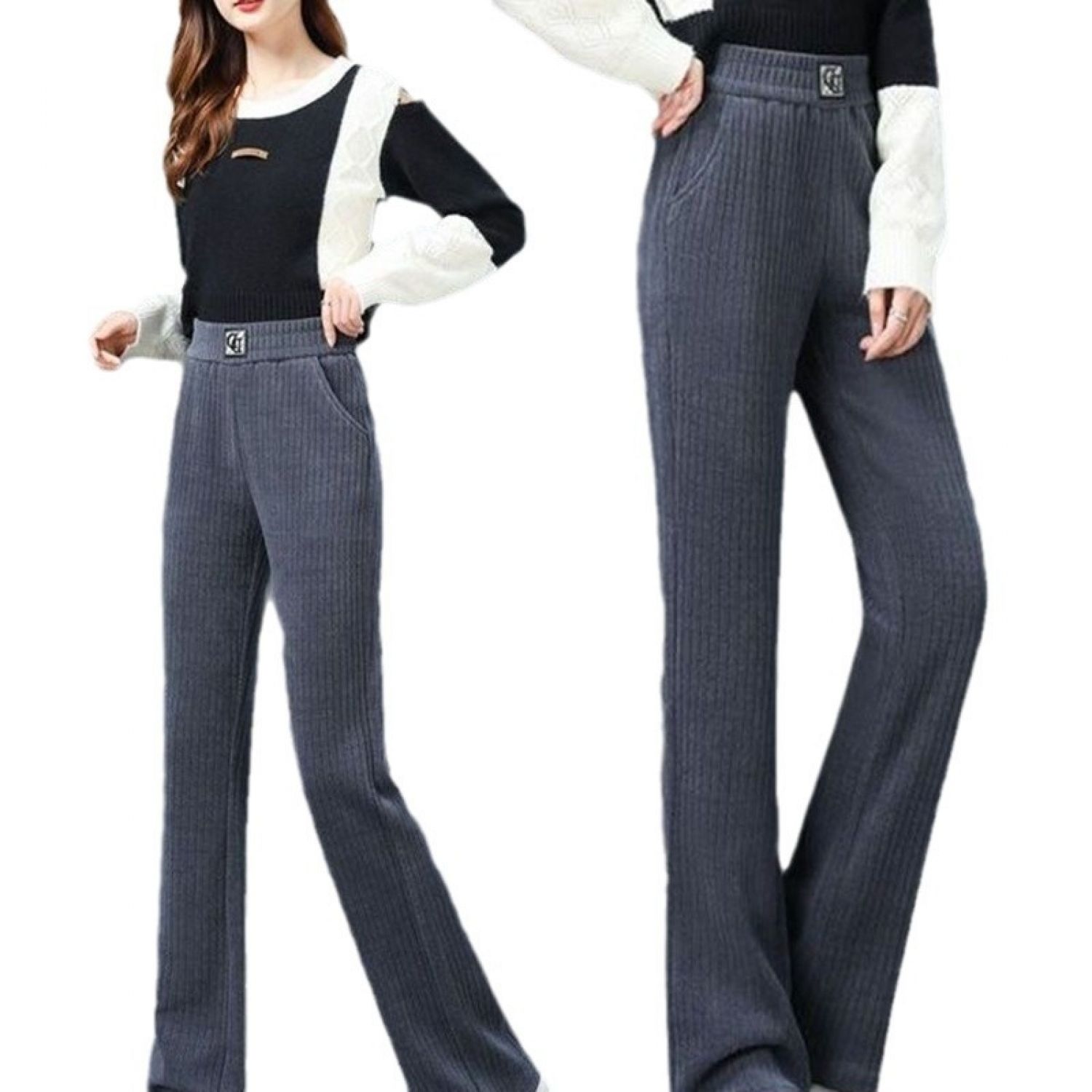Women's Wide-leg Pants Fallwinter High Waist Drooping DD Label Black M