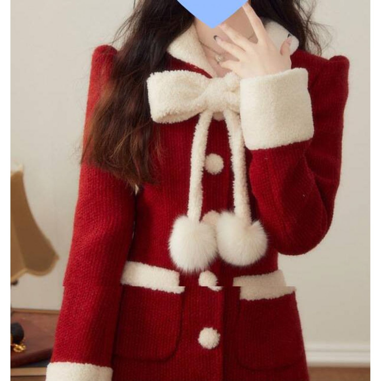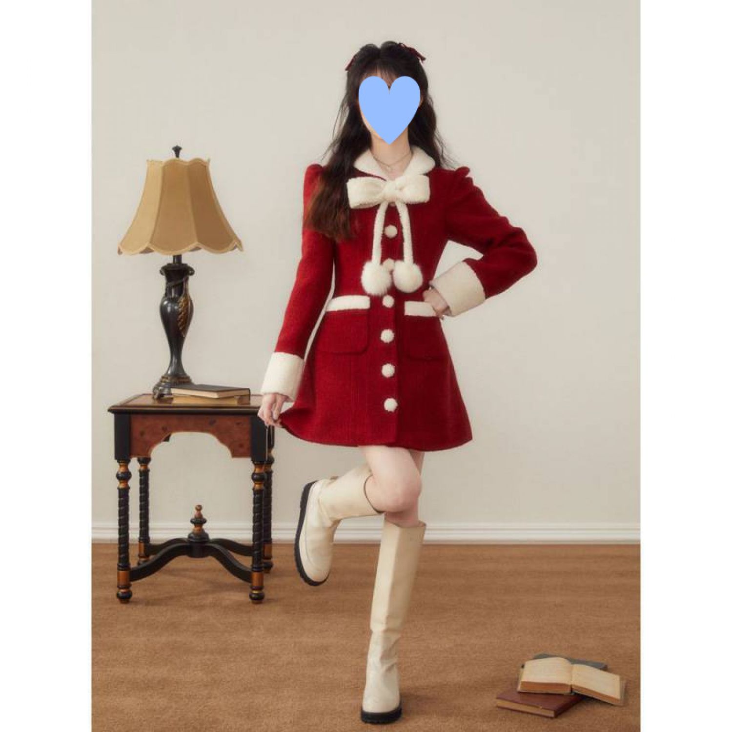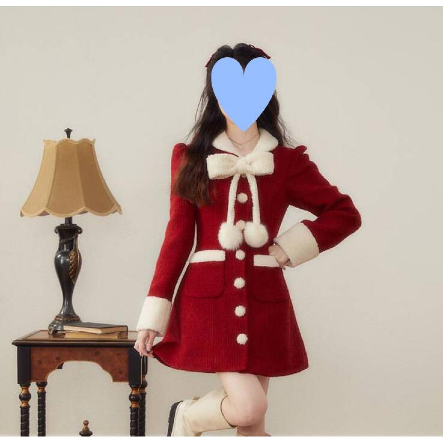 Women's Winter Christmas New Year Red Woolen Coat Red S