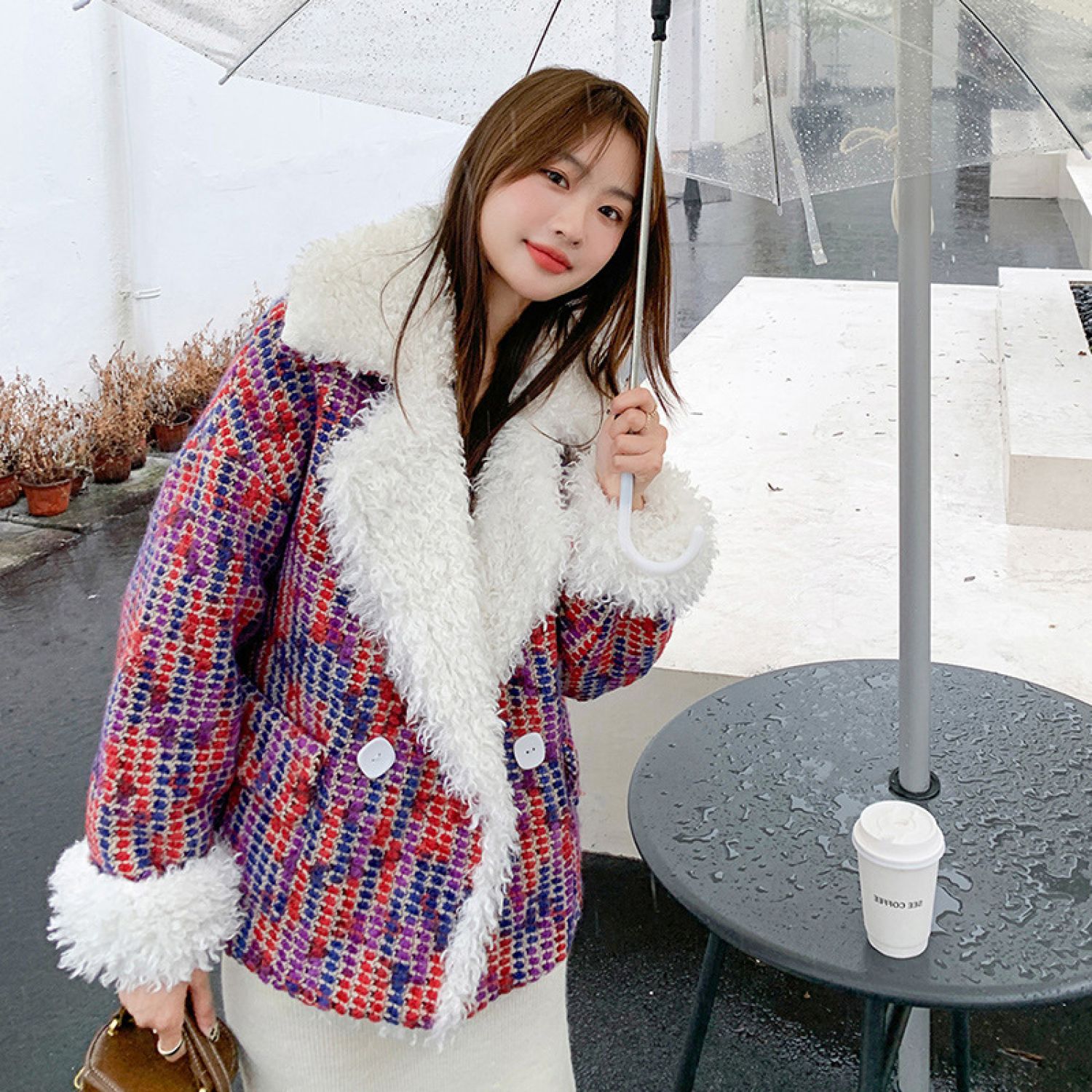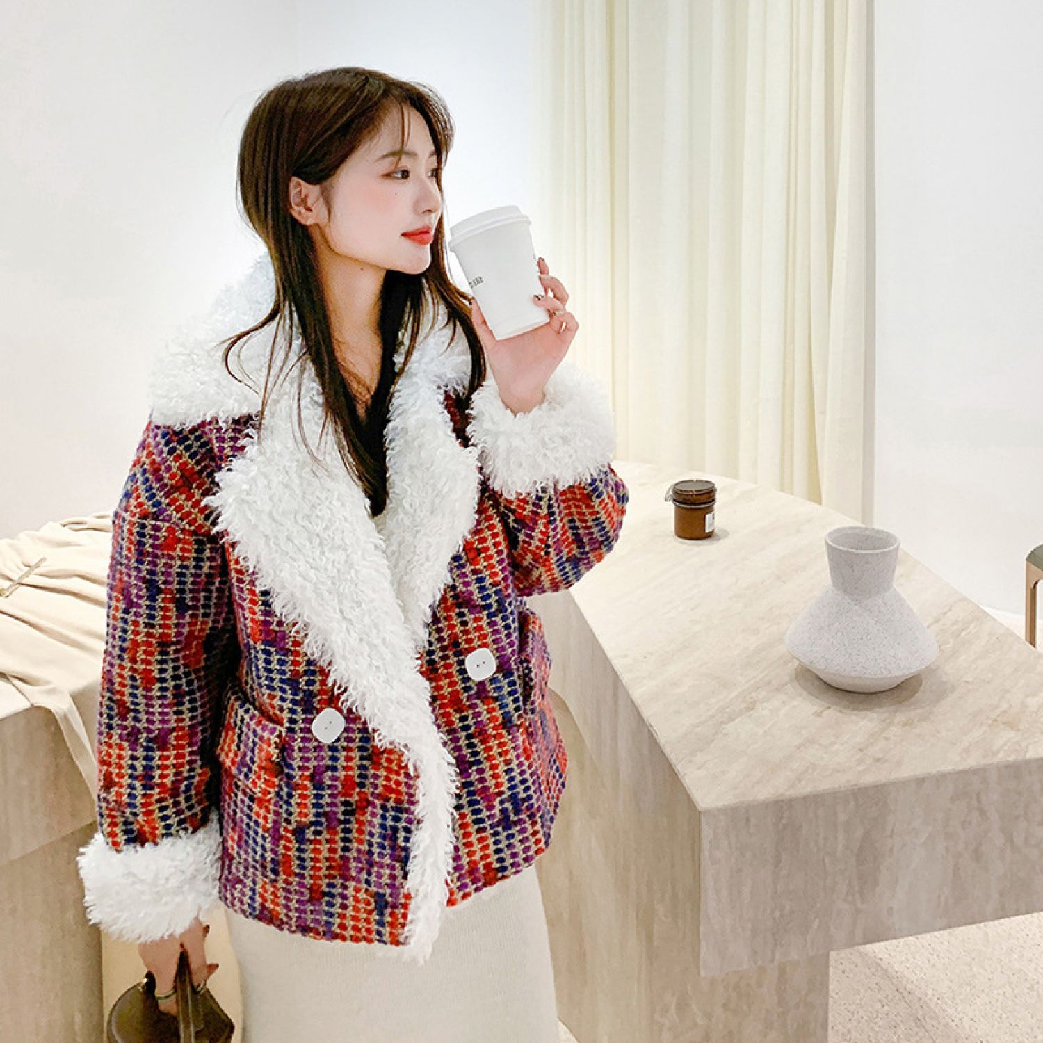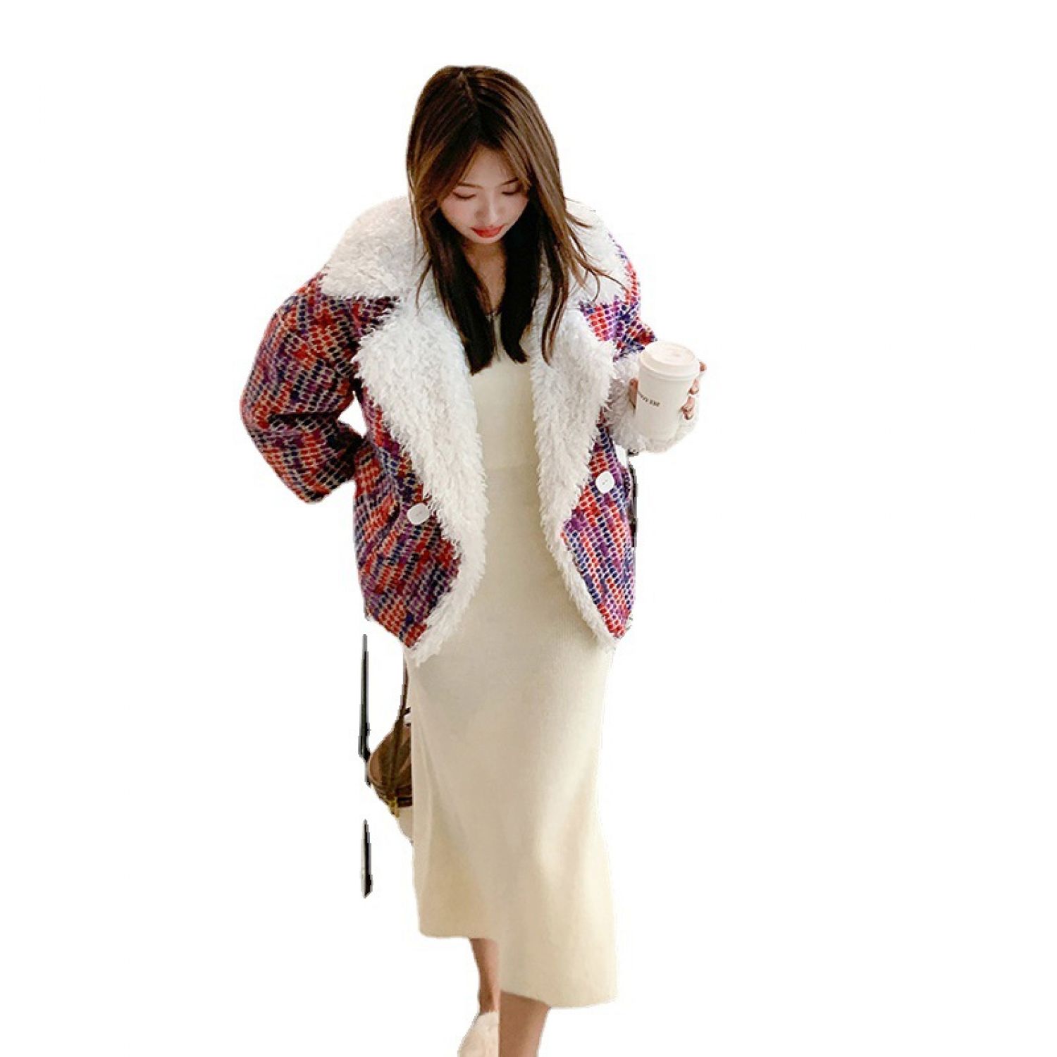 Xiaoxiangfeng Real Shot New Wool Lamb Jacket Red S