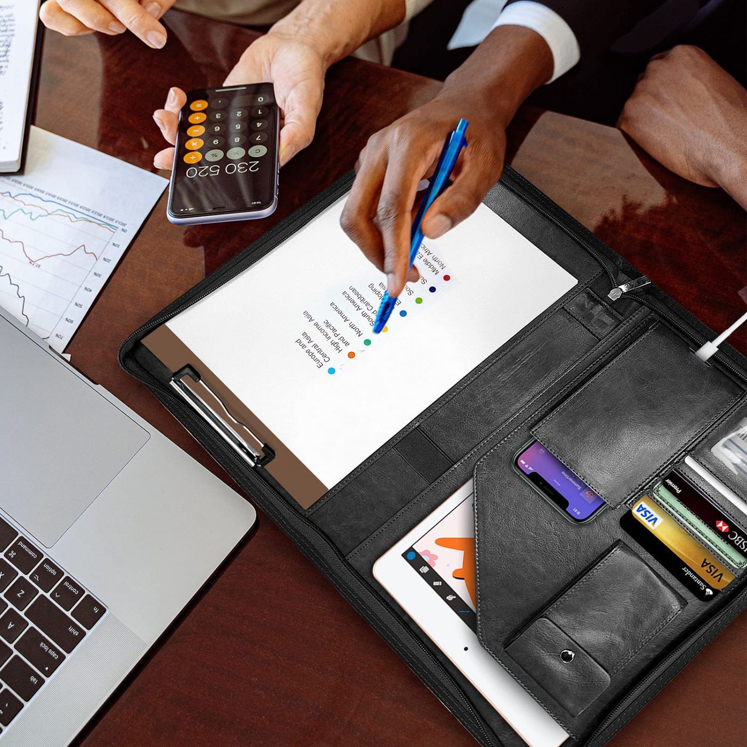 Zipper Buggy Bag Leather Planning Loose-leaf Envelope Storage Bag Black Average Size